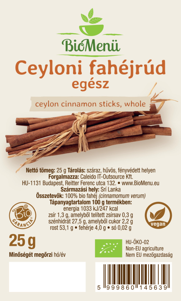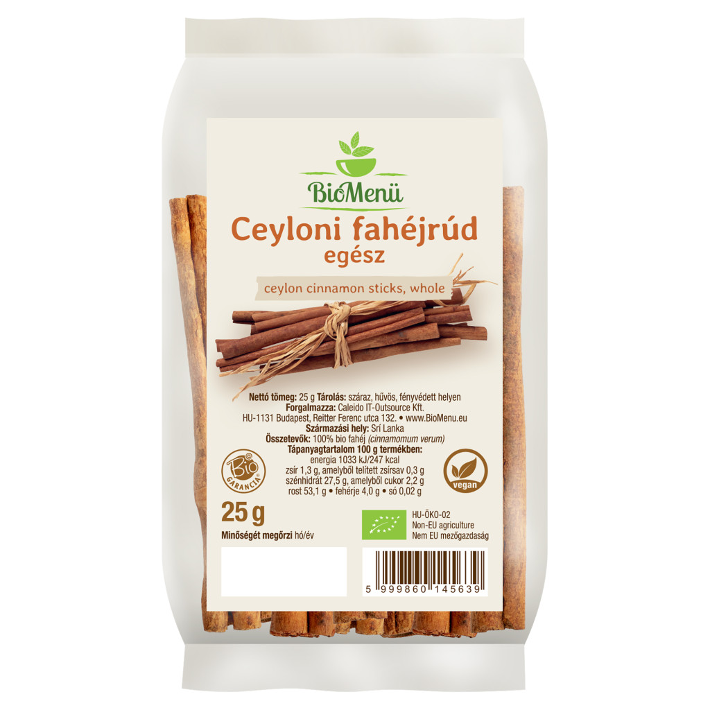 BioŠkoricové tyčinky BioMenü z Cejlónu sú jednou z najcennejších a najčistejších škoricových tyčiniek na svete, pochádzajúcou zo Srí Lanky, ktorá je prapôvodným domovom škorice. Vďaka svojej výrazne sladkej, mierne citrusovej vôni a hodvábnej štruktúre je vynikajúcou voľbou ako každodenné korenie. Balená v prírodnej forme, bez prísad a konzervačných látok, si zachováva svoju plnú chuť a vôňu.