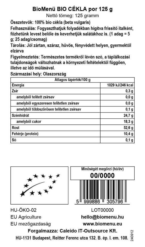 Organický prášok z červenej repy je v súlade s požiadavkami uvedenými v nariadení Rady (ES) č. 834/2007 (a následných zmenách). Spĺňa tiež prísne normy ekologického poľnohospodárstva Soil Association. Počas výrobného procesu nie sú produkt a obalové materiály vystavené pesticídom ani rezíduám pesticídov. Pesticídy sa neskladujú na mieste, ani sa nepoužívajú vo výrobných alebo skladovacích priestoroch.