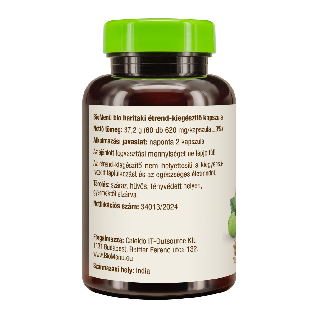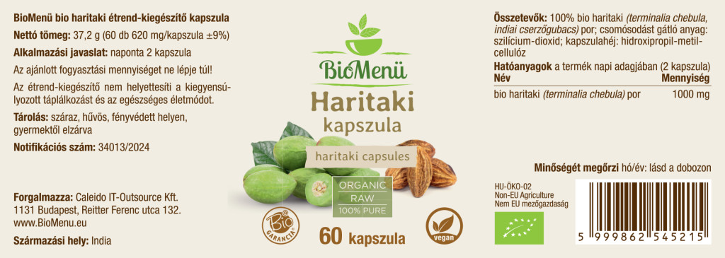 100% organický prášok haritaki (terminalia chebula); protihrudkujúca látka: oxid kremičitý; obal kapsuly: hydroxypropylmetylcelulóza