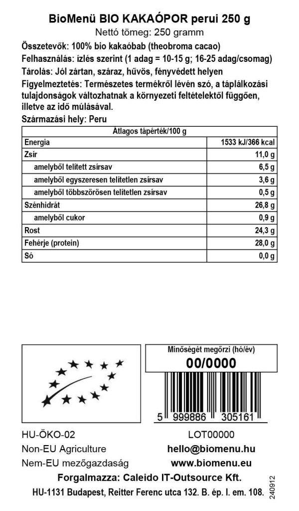 BioMenü bio Kakaový prášok z Peru 250 g obrázok produktu