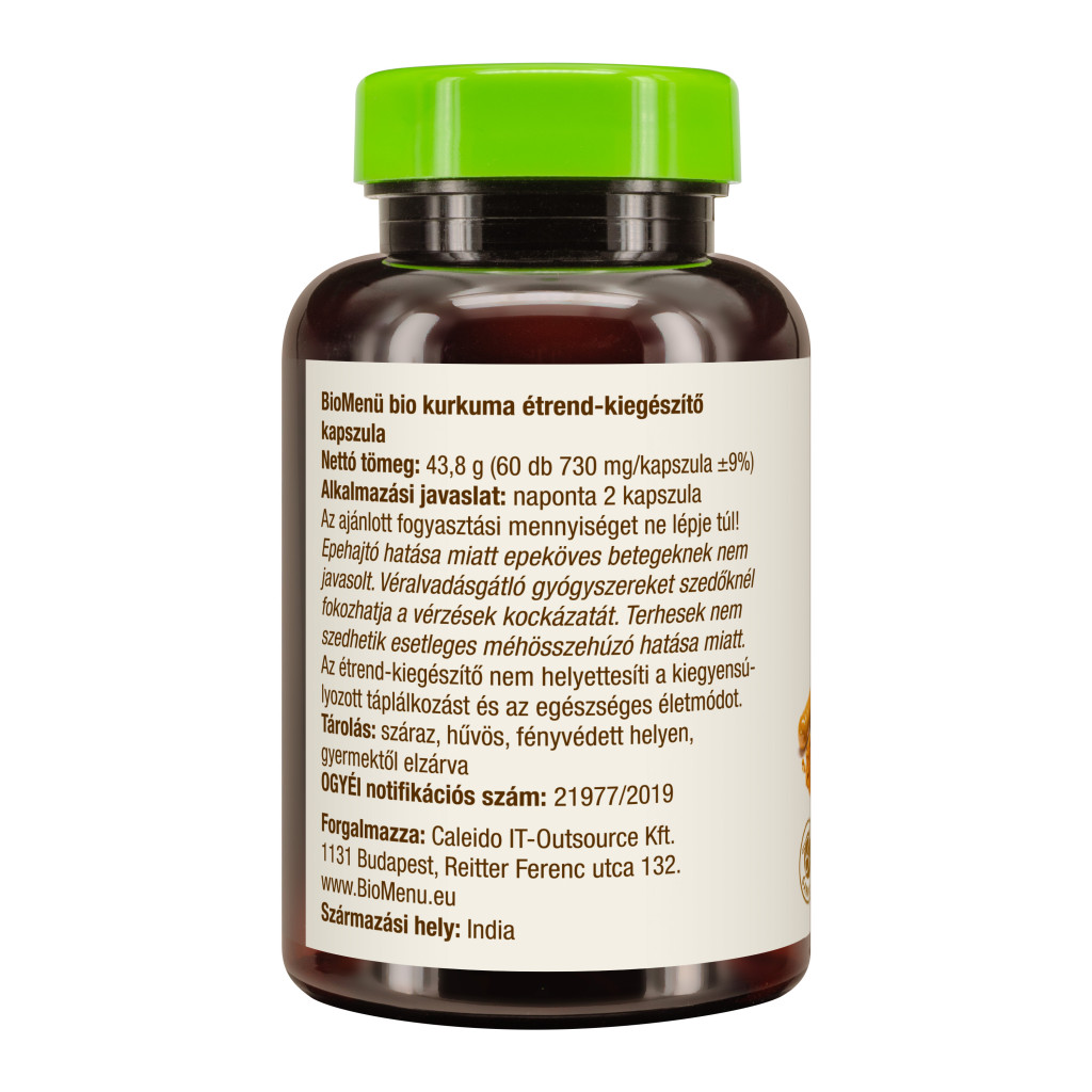 Kapsuly s organickou kurkumou sú v súlade s požiadavkami uvedenými v nariadení Rady (ES) č. 834/2007 (a následných zmenách). Tiež spĺňajú prísne normy ekologického poľnohospodárstva Soil Association. Počas výrobného procesu nie sú produkt a obalové materiály vystavené pesticídom ani rezíduám pesticídov. Pesticídy sa neskladujú na mieste, ani sa nepoužívajú vo výrobných alebo skladovacích priestoroch.