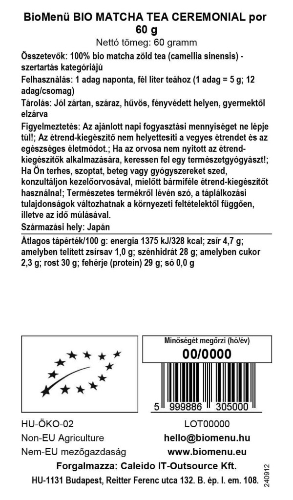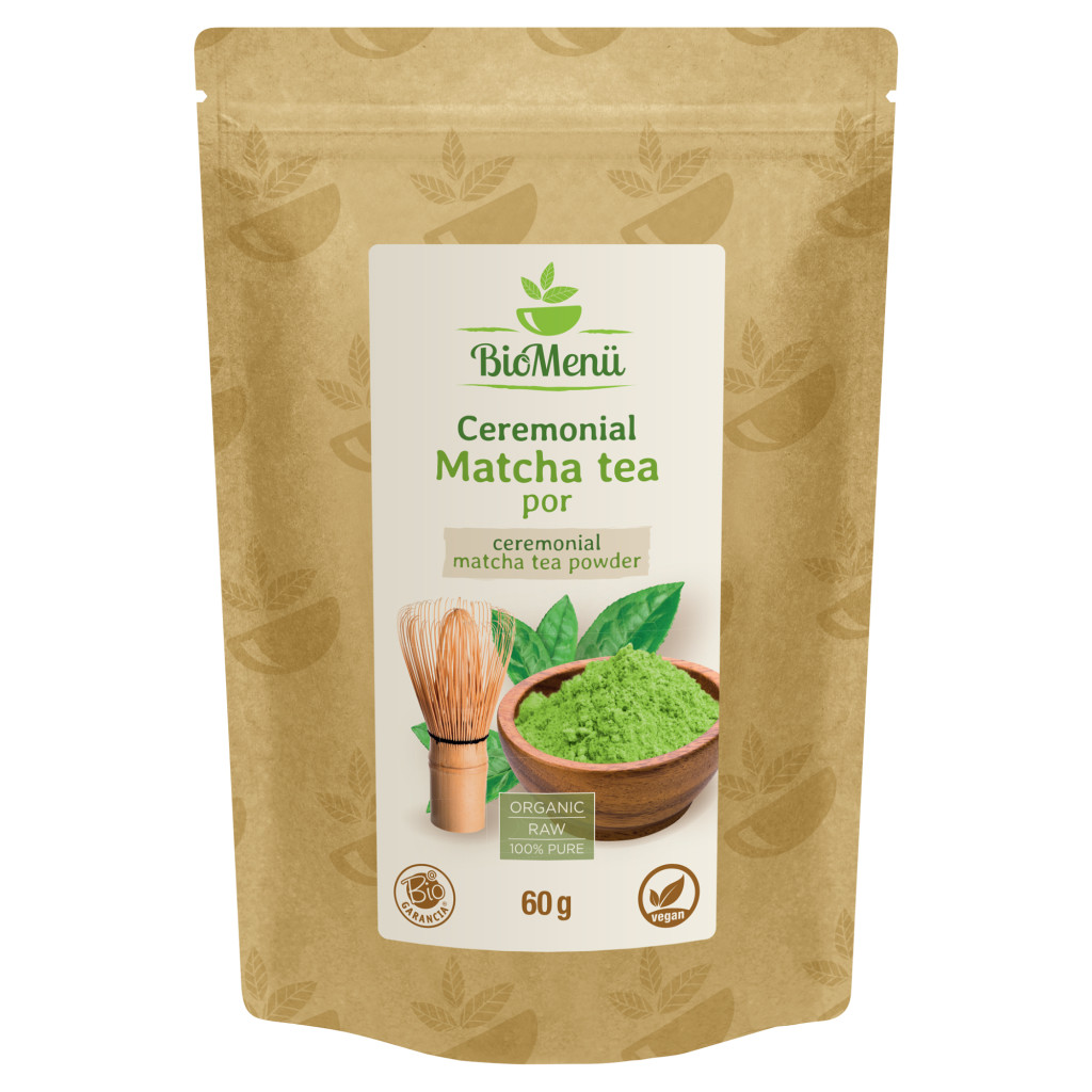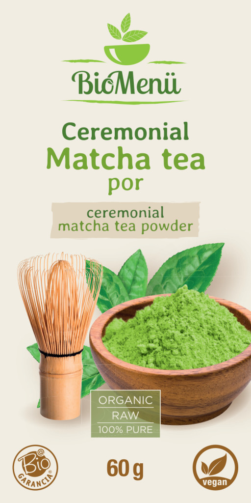 Náš prášok BioMenu BIO MATCHA TEA CEREMONIAL obsahuje prášok zo zeleného čaju Ceremonial Grade, ktorý sa používa pri tradičných japonských čajových obradoch už takmer tisícročie. Prášok sa vyrába z listov čajovníka zvaného camellia sinensis. Najjemnejšie výhonky sa zbierajú a sušia, aby sa vytvoril jemne mletý prášok. Má jedinečnú, charakteristickú horkú chuť. Matcha sa dá použiť aj ako potravinová prísada a ako prirodzená potravina.