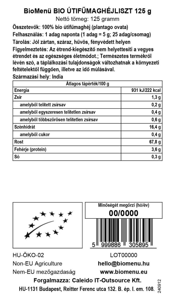 Organický Psyllium Husk Powder spĺňa požiadavky uvedené v nariadení Rady (ES) č. 834/2007 (a následných zmenách). Spĺňa tiež prísne normy ekologického poľnohospodárstva Soil Association. Počas výrobného procesu nie sú produkt a obalové materiály vystavené pesticídom ani rezíduám pesticídov. Pesticídy sa neskladujú na mieste, ani sa nepoužívajú vo výrobných alebo skladovacích priestoroch.