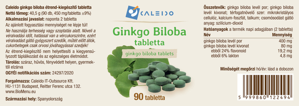 prášok z listov ginkgo biloby 400 mg; extrakt z listov ginkgo biloby 80 mg (z toho flavonoidy 19,2 mg; laktóny 4,8 mg)